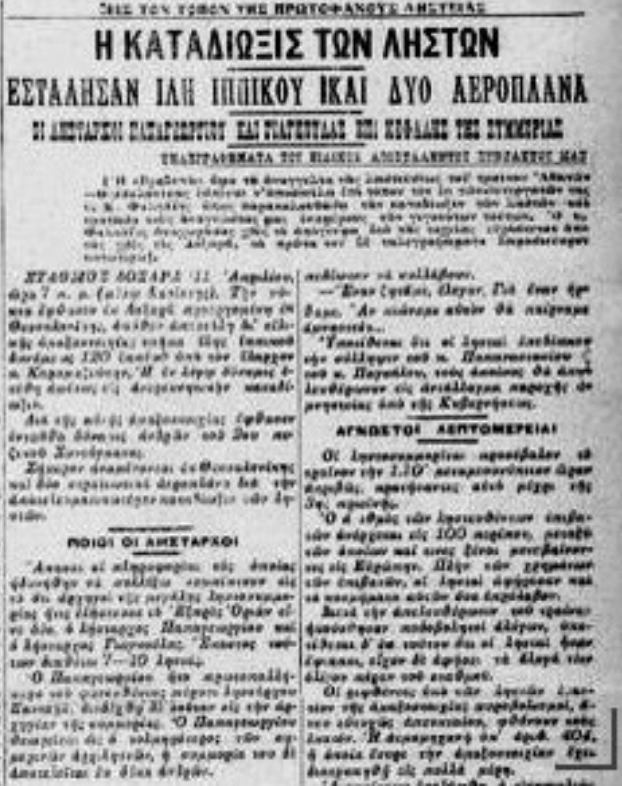 Στις 10 Απριλίου 1924 σημειώθηκε η πρώτη ληστεία τρένου στην Ελλάδα.