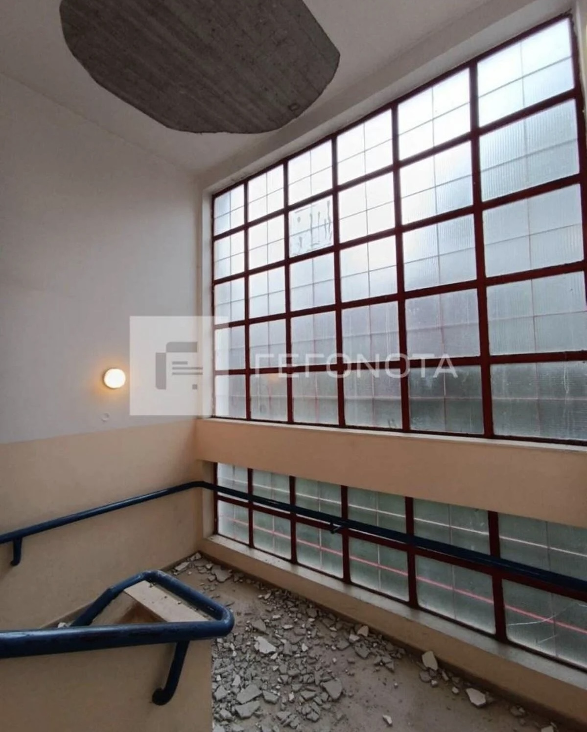 Όταν μπήκε στο χώρο, είδε σοβάδες πεσμένους στη σκάλα.