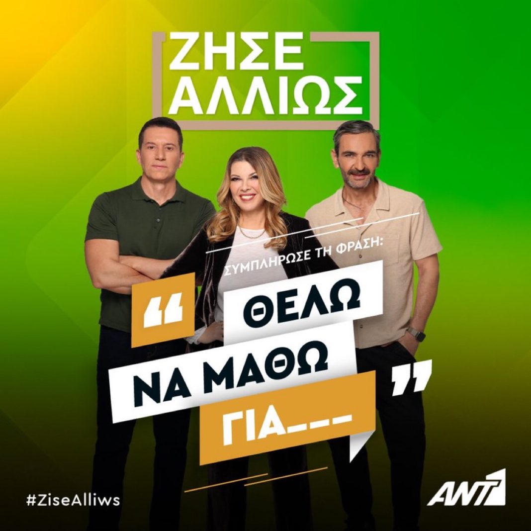 Το «ΖΗΣΕ ΑΛΛΙΩΣ» έρχεται καθημερινά στον ΑΝΤ1 για να αλλάξει τη ζωή μας και να μας βοηθήσει να ζήσουμε καλύτερα, να ζήσουμε αλλιώς!