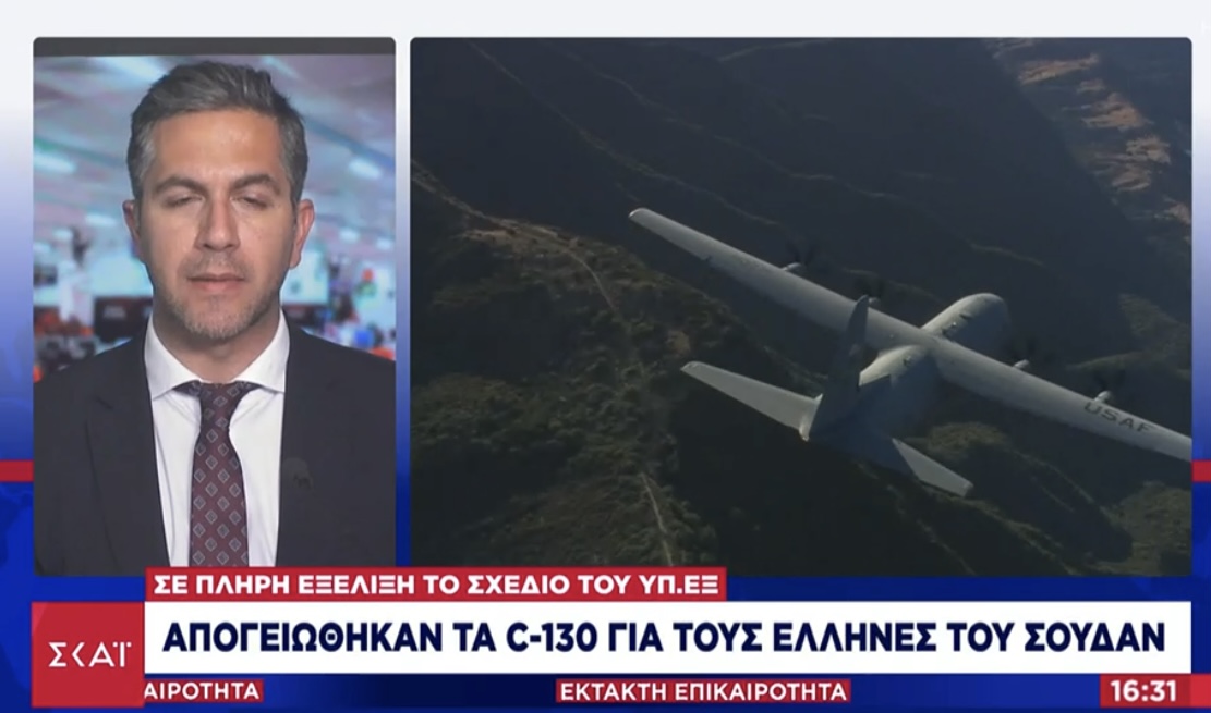 Όπως έγινε γνωστό από το ΓΕΕΘΑ, δυο μεταγωγικά αεροσκάφη C-130 και C-27j απογειώθηκαν από την Ελευσίνα με προορισμό την Αίγυπτο, στο πλαίσιο της επιχείρησης απεγκλωβισμού των Ελλήνων πολιτών από το Σουδάν.