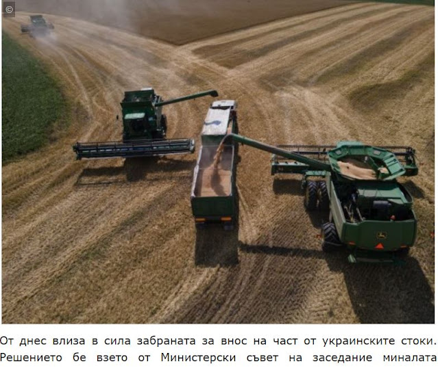 «Να μην πραγματοποιηθεί η βουλγαρική παραγωγή, γεγονός που μπορεί να οδηγήσει σε τεράστιες ζημιές για τους παραγωγούς. Έτσι, η χώρα μας γίνεται η τέταρτη στην Ευρώπη που επιβάλλει εμπάργκο στις εισαγωγές ουκρανικών προϊόντων μετά την Πολωνία, την Ουγγαρία και τη Σλοβακία», αναφέρουν τα βουλγαρικά media.
