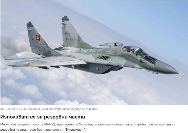 Ο «Economist» σημειώνει ότι η Πολωνία και η Σλοβακία παρέδωσαν οκτώ μαχητικά αεροσκάφη MiG-29 στο Κίεβο.