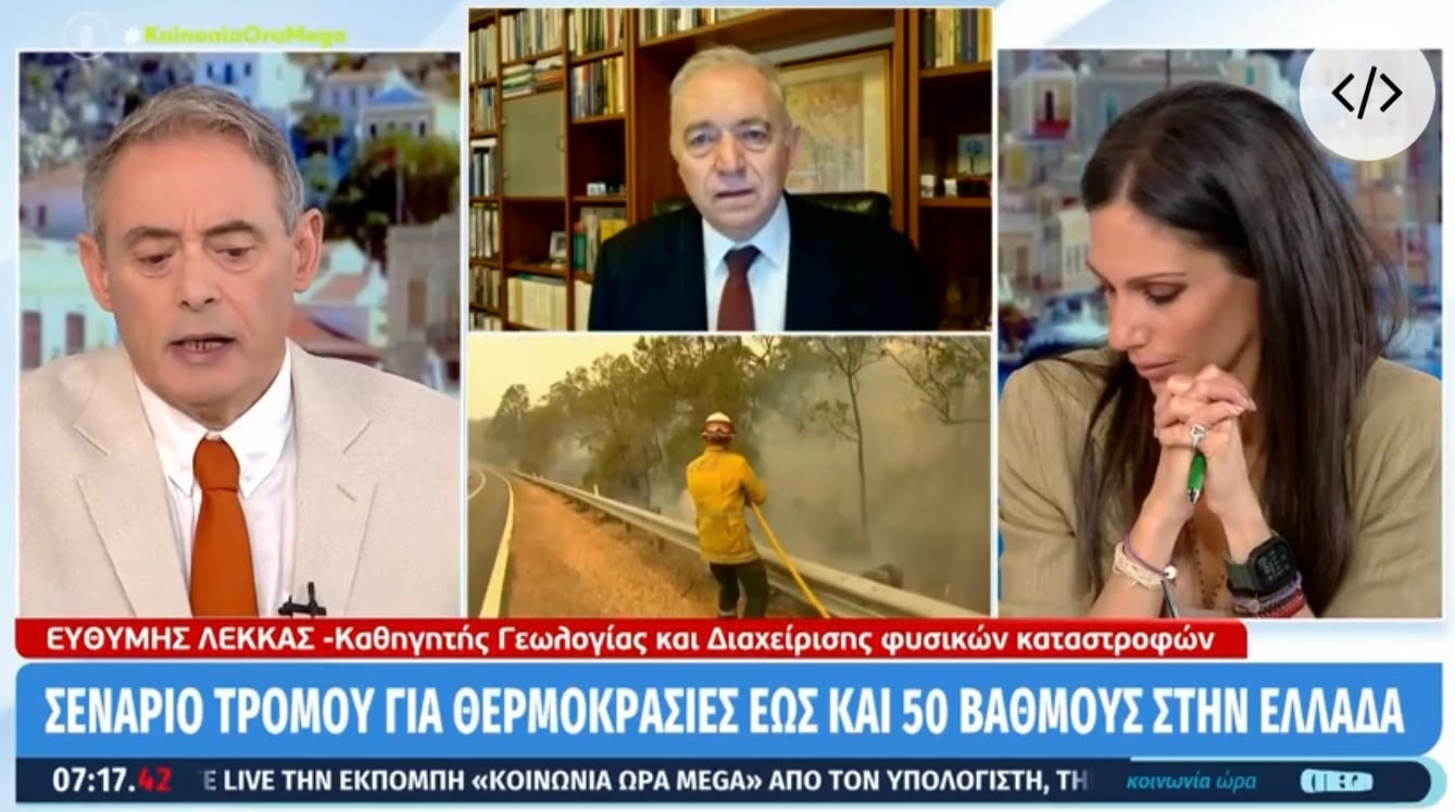 «Είναι πιθανό να έχουμε το πιο θερμό καλοκαίρι. Σε ολόκληρο τον κόσμο οι προοπτικές για το επόμενο καλοκαίρι είναι δυσοίωνες. Και αυτό το υπογραμμίζουν οι μεγάλές θερμοκρασίες οι οποίες αυτή την στιγμή υπάρχουν στην Ισπανία, στην Γαλλία αλλά και σε άλλα μέρη του κόσμου. Η Ανατολική Μεσόγειος είναι η πιο ευαίσθητη περιοχή σε όλα αυτά τα φαινόμενα. Όλα αυτά εντάσσονται σε αυτό που λέμε κλιματική κρίση» είπε αρχικά ο Ευθύμιος Λέκκας.