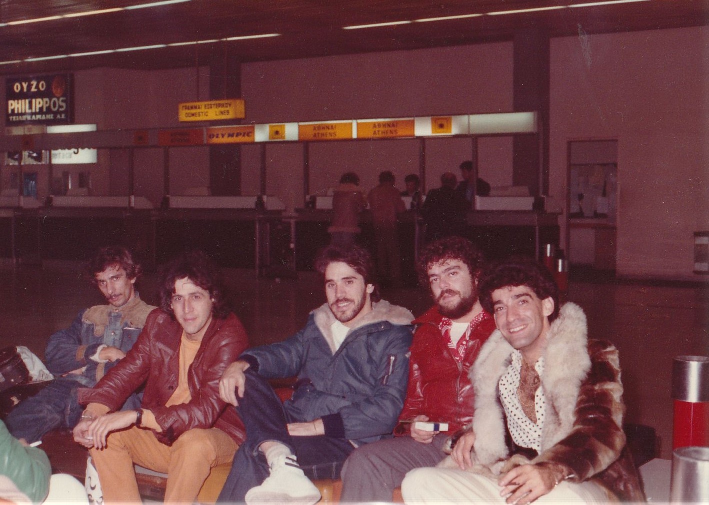 Ειμαστε στο αεροδρομιο της ΜΑΚΕΔΟΝΙΑΣ .υστερα απο μια θυελλωδη συναυλια στο ΡΑΔΙΟ ΣΙΤΥ της θεσσαλονικης .Απο αριστερα ο μπασιστας ΣΩΤΗΡΗΣ ΚΑΡΑΟΥΛΙΑΣ -που μου εστειλε και την φωτογραφια- ο ΗΛΙΑΣ ΑΣΒΕΣΤΟΠΟΥΛΟΣ .διπλα μου ο…ΣΤΕΛΙΟΣ ΚΑΡΑΙΝΔΡΟΣ και δεξια ο κιθαριστας ΓΙΑΝΝΗΣ ΧΑΤΖΗΣΟΓΛΟΥ …Μια φοβερα ”δεμενη”παρεα ”που στις 5 πρωι ..