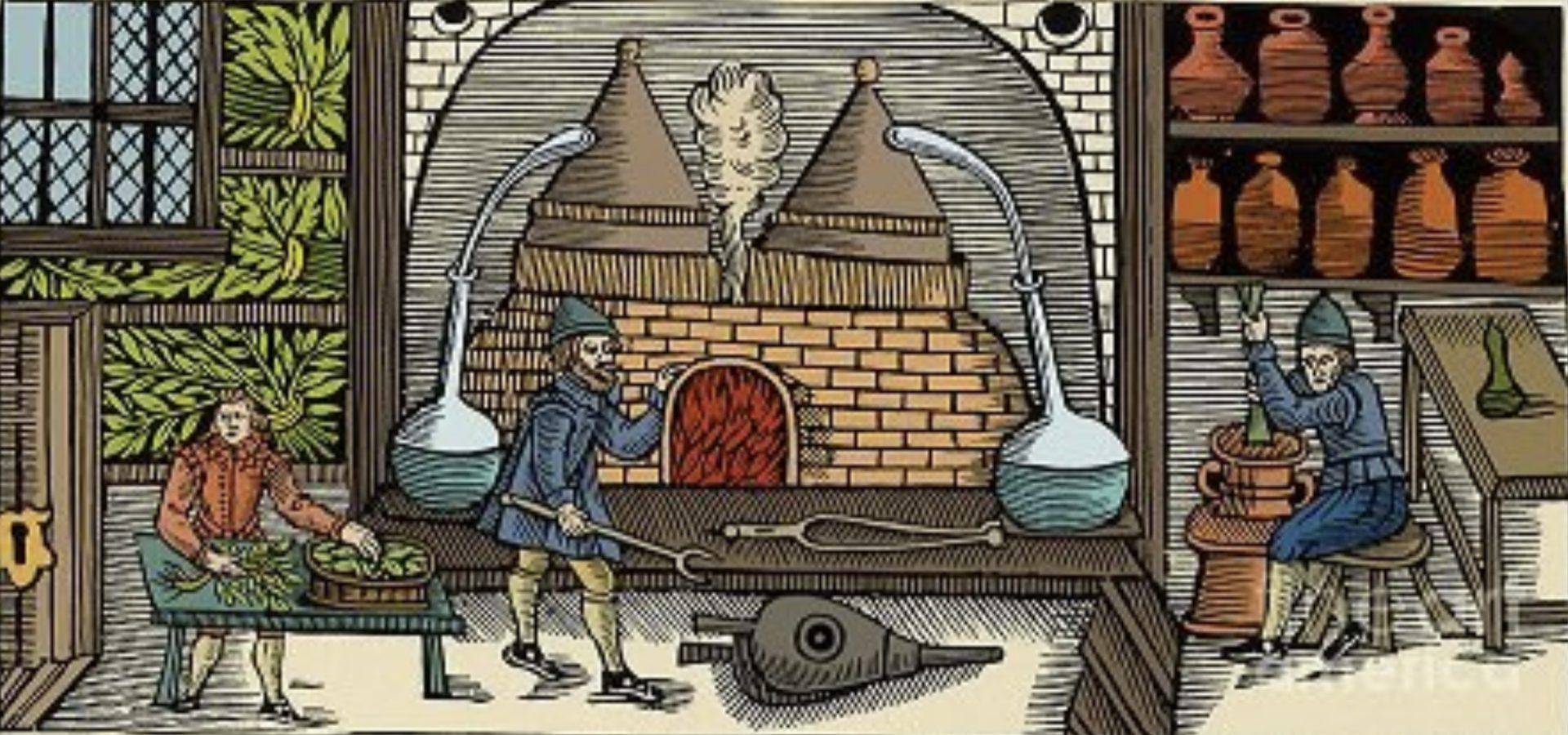 Από τον 13ο αιώνα, οι φαρμακοποιοί είχαν ενισχύσει την τέχνη της απόσταξης αναμιγνύοντας νερό και αιθέρια έλαια. Μετά τη διαδικασία της βράσης περνούσαν στη διαδικασία της ψύξης. Οι εφευρέτες τότε, συνδύασαν αυτά τα αιθέρια έλαια με αλκοόλ ώστε να δημιουργήσουν το σταθερό και απορροφητικό άρωμα που γνωρίζουμε σήμερα.