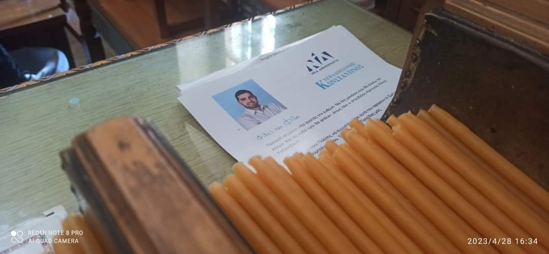 Την… ευλογία του Θεού (και την ψήφο των ανθρώπων) σκέφτηκε κάποιος να δώσει στον υποψήφιο Βουλευτή ΝΔ του Νομού Ηρακλείου Κωνσταντίνο Κεφαλογιάννη και φρόντισε να τοποθετήσει προεκλογικό υλικό του μέσα σε εκκλησία και συγκεκριμένα στο σημείο που οι πιστοί περνούν για να πάρουν ένα κερί να ανάψουν.