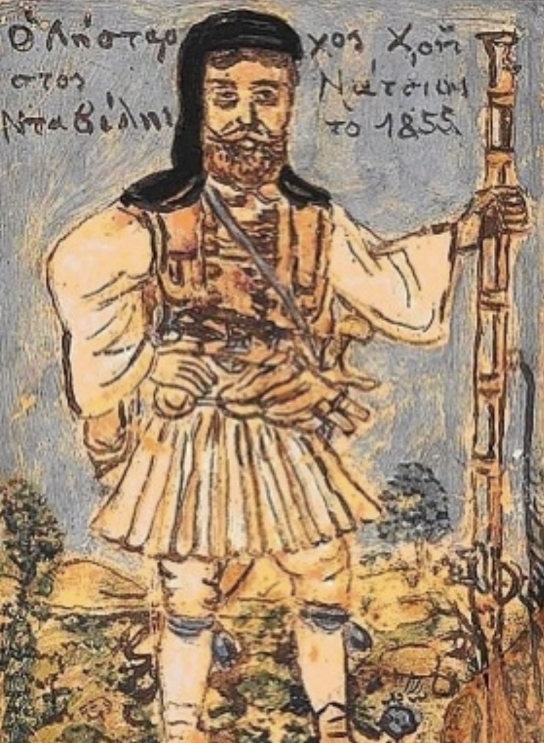 Φωτογραφία:«Ο Λήσταρχος Χρήστος Νάτσιας Νταβέλης το 1855», λαδομπογιά πάνω σε χαρτόνι (23 x 31,5 εκ.), αχρονολόγητος κι ανυπόγραφος. Δημοτική Πινακοθήκη Ρόδου