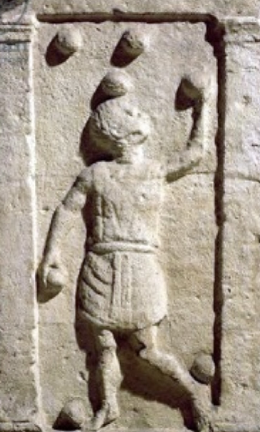 Το παιγνίδι φαίνεται να συνεχίζεται και στα ελληνικά και τα ρωμαϊκά χρόνια. Το ταφικό ανάγλυφο (του 1ου αιώνα μ.Χ.) – στην κορυφή του άρθρου – είναι από την στήλη Settimia Spica, όπου εικονίζεται ένας… ζογκλέρ. Το ανάγλυφο εκτίθετο στο Museo della Civilta Romana. Αλλά αυτό έκλεισε το… 2014 για την «αναμόρφωσή του». Και φαίνεται ότι τα έργα του δεν έχουν αρχίσει ποτέ… Έτσι θάβεται(;) η Ιστορία… και μένει μόνο σε φωτογραφίες…