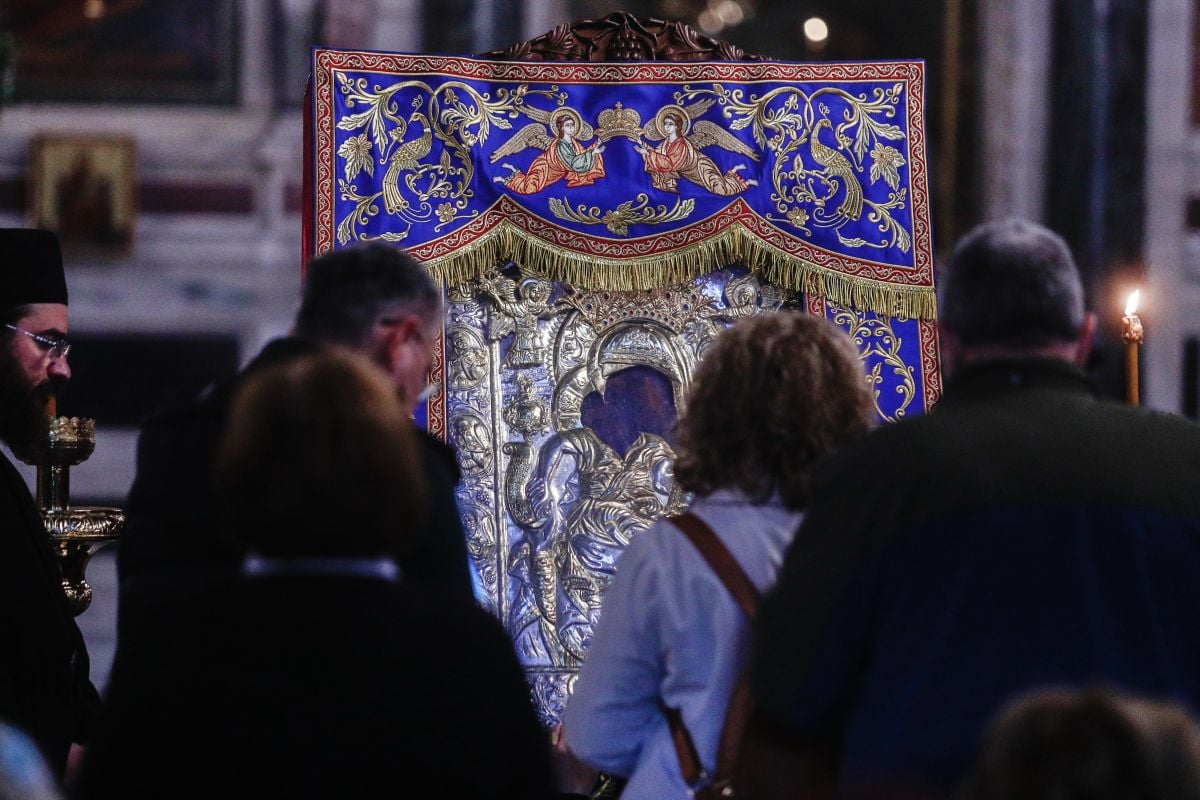 Με κόσμο «πλημμύρισε» από νωρίς σήμερα το πρωί, για τρίτη συνεχόμενη μέρα, ο προαύλιος χώρος και το εσωτερικό της Μητρόπολης Αθηνών από πιστούς που ήθελαν να προσκυνήσουν την θαυματουργή εικόνα της Παναγίας «Άξιον Εστί».