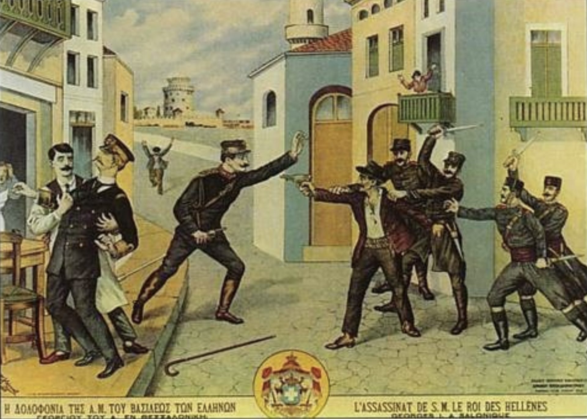 Στις 5 Μαρτίου 1913 κατά τις απογευματινές ώρες και ενώ ο βασιλιάς Γεώργιος Α΄ περπατούσε στην αποβάθρα του Λευκού Πύργου, συνοδευόμενος από τον υπασπιστή του, ταγματάρχη Ιωάννη Φραγκούδη, ο Αλέξανδρος Σχινάς από κοντινή απόσταση πυροβόλησε τον βασιλιά Γεώργιο με αποτέλεσμα να τον φονεύσει ακαριαία. Αμέσως μετά αναφέρεται ότι συνελήφθη από τον υπασπιστή του βασιλιά Ιωάννη Φραγκούδη.