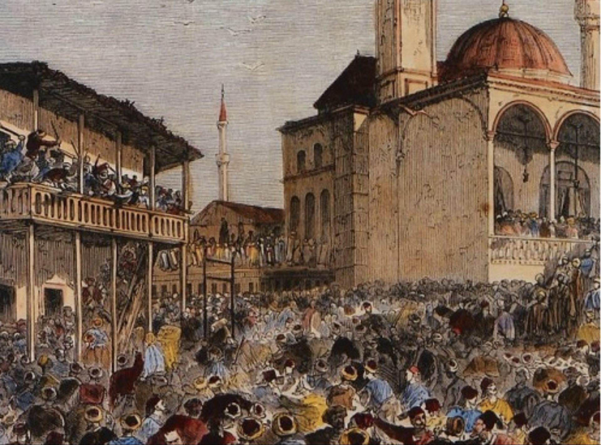 Τότε κατευθύνθηκαν προς το Κονάκι ο Ζυλ Μουλέν, πρόξενος της Γαλλίας, και ο Ερρίκος Άμποτ, πρόξενος της Γερμανίας. Οι πρόξενοι δεν μπόρεσαν ποτέ να φτάσουν στον προορισμό τους, καθώς βρέθηκαν στο τζαμί, όπου κρατήθηκαν ως όμηροι, με στόχο να γίνει ανταλλαγή με τη νεαρή γυναίκα. Ο βαλής κι ο διοικητής της αστυνομίας προσπάθησαν να κατευνάσουν τους συγκεντρωμένους και να απελευθερώσουν τους προξένους, μάλλον όμως χωρίς ιδιαίτερο ζήλο. Τελικά, ο όχλος εισέβαλε στο δωμάτιο που κρατούνταν οι Μουλέν και Αμπότ και τους σκότωσε χτυπώντας τους με ξύλα και σίδερα.