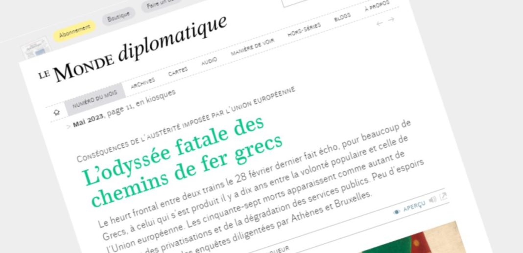 Ολοσέλιδο ρεπορτάζ της Le Monde Diplomatique για την τραγωδία στα Τέμπη. «Η μοιραία οδύσσεια των ελληνικών σιδηροδρόμων.» Μνημονιακή λιτότητα στην υποδομή, διαπλοκή, κουλτούρα ατιμωρησίας, μητσοτακική «αριστεία» με σταθμάρχη.