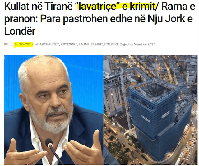 Ο Πρωθυπουργός Έντι Ράμα παραδέχτηκε εμμέσως στο στούντιο TPZ ότι τα Τίρανα έχουν μετατραπεί σε «πλυντήριο» για τον καθαρισμό βρώμικων χρημάτων που προέρχονται από ναρκωτικά, τα οποία επενδύουν αλβανικές εγκληματικές ομάδες στον κατασκευαστικό τομέα της πρωτεύουσας, γράφουν τα αλβανικά media.