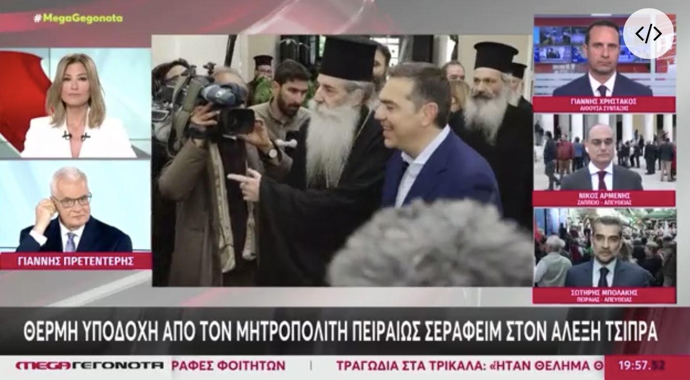 Ο πρόεδρος του ΣΥΡΙΖΑ επισκέφθηκε και το «Μαρινάκειον Μέλαθρον», εκεί που τον υποδέχθηκε ο Μητροπολίτης Πειραιά Σεραφείμ.