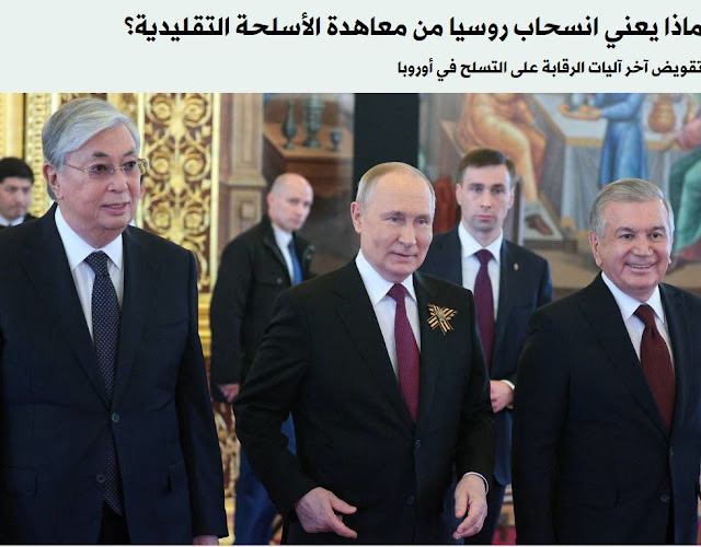 Την Τετάρτη, ο Ρώσος πρόεδρος Βλαντιμίρ Πούτιν υπέγραψε διάταγμα που ορίζει την αποχώρηση της χώρας του από τη Συνθήκη για τα συμβατικά όπλα στην Ευρώπη, τερματίζοντας τη δέσμευση της Μόσχας στις τελευταίες συνθήκες ελέγχου των όπλων στην ευρωπαϊκή ήπειρο, γράφει σε ανάλυσή της η αραβική «Μέση Ανατολή».