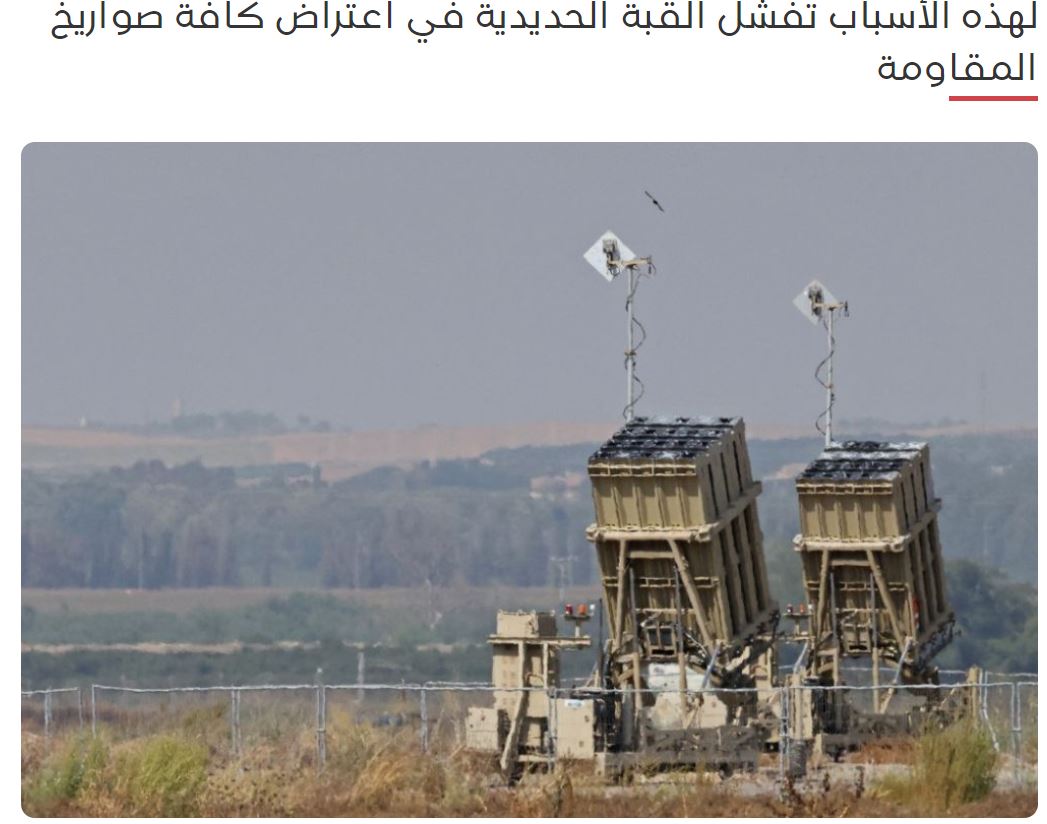 Το όνομα Iron Dome αναφέρεται συνεχώς στους γύρους επιθετικότητας που εξαπολύει η κατοχή (το Ισραήλ) κατά των Παλαιστινίων στη Λωρίδα της Γάζας, ως σύστημα παρακολούθησης και αναχαίτισης των πυραύλων της αντίστασης, αλλά σε κάθε γύρο δείχνει μεγάλη αποτυχία στην επίτευξη των στόχων του…