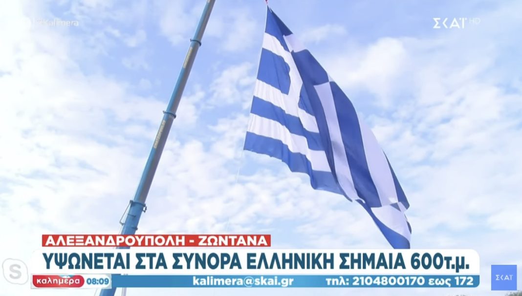 Την ώρα που διεξάγονται οι εκλογές στην Τουρκία, στα ελληνικά σύνορα υψώθηκε η μεγαλύτερη ελληνική σημαία.