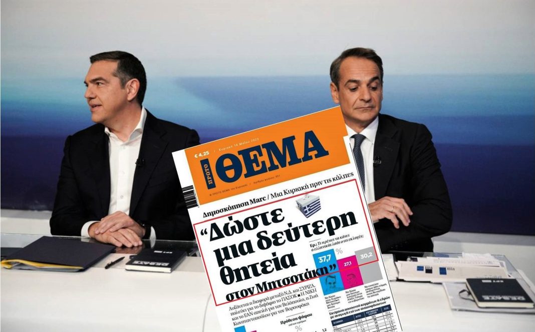 Στο σημερινό πρωτοσέλιδο από το “ΠΡΩΤΟ ΘΕΜΑ” δημοσιεύεται δημοσκόπηση της Marc που φέρνει 1η την Ν.Δ με διαφορά 6.7% (33,6 ΝΔ, 26,9 ΣΥΡΙΖΑ)