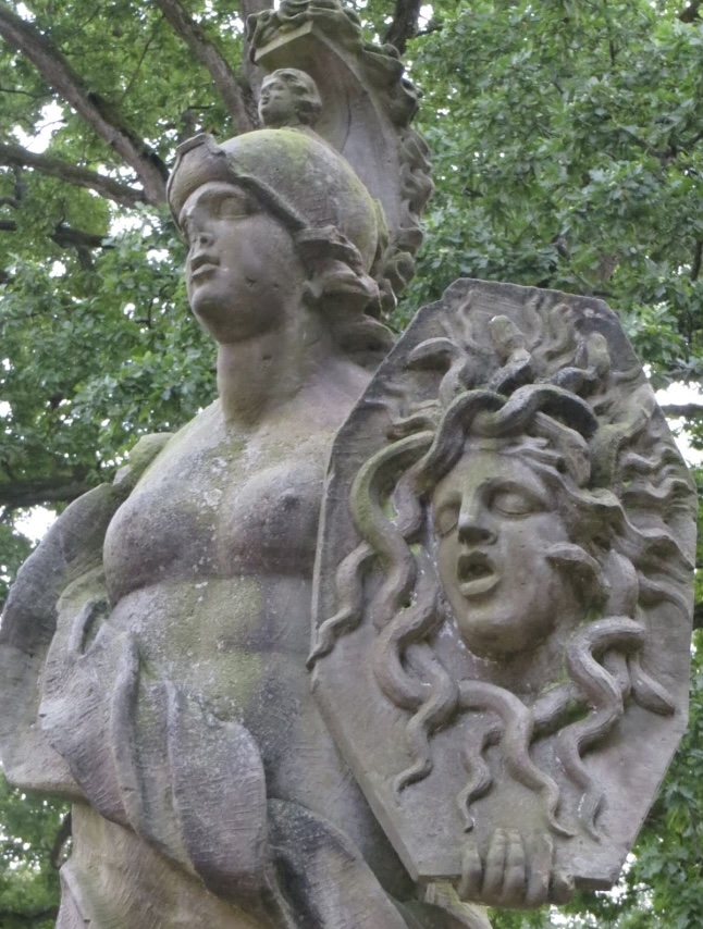 Δεν αρκείται όμως η Αθηνά στην παραμόρφωση της Μέδουσας. Θέλει και το κεφάλι της. Και μόλις ο Περσέας (γιος του Δία και της Δανάης), υπερηφανεύεται ότι θα φέρει στον Πολυδέκτη το κεφάλι της Γοργούς, η θεά Αθηνά τρέχει να τον βοηθήσει. Του δίνει καλογυαλισμένη ασπίδα για να τη χρησιμοποιήσει σαν καθρέφτη και έτσι να αποκόψει το τρομερό κεφάλι δίχως να το κοιτάζει.