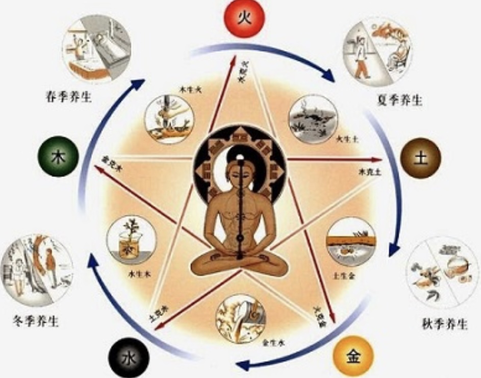 H θεωρία των πέντε στοιχείων μαζί με τις έννοιες «γιν» και «γιανγκ» και την έννοια της ζωτικής δύναμης «τσι» αποτελούν τη βάση της κινεζικής ιατρικής και φιλοσοφίας.