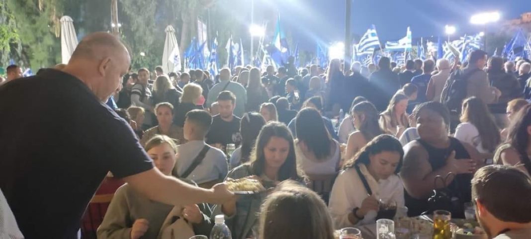 Με τζατζίκια και τηγανητές πατατούλες και καλοψημένο παραδοσιακό γύρο απόλαυσαν κάποιοι την ομιλία του πρωθυπουργού με θεα την Ακροπολη χθες το βράδυ σύμφωνα με όσα μπορει να διακρίνει καποιος σε φωτογραφιες που κυκλοφορούν στο διαδίκτυο οπως αυτή που βλεπουμε παρακάτω.