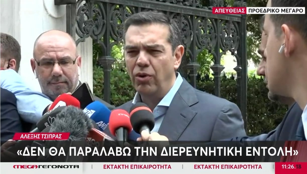 Ο κ. Τσίπρας δεν παρέλαβε την εντολή, καθώς -όπως είπε- κατά την σύντομη συνομιλία του με την ΠτΔ, «δεν προκύπτει δυνατότητα σχηματισμού κυβέρνησης».
