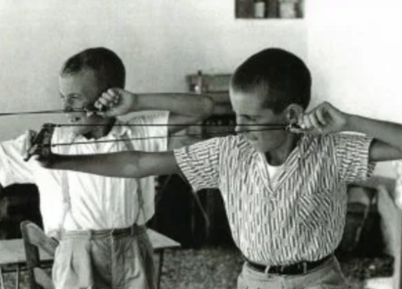 Εκείνη την εποχή, τα παιδιά είχαν απαραίτητα μαζί τους και από μία ξύλινη σφεντόνα ( τέγκαλα ) για το κυνήγι των πουλιών και για το σημάδι διαφόρων στόχων.