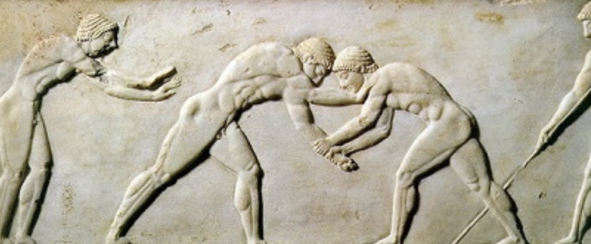 Από τα πιο αγαπημένα αγωνίσματα στην αρχαία Ελλάδα ήταν η πάλη. Ο Όμηρος στα «άθλα επί Πατρόκλω» μας περιγράφει σκηνές πάλης. Ως εφευρέτης του αθλήματος αναφέρεται ο Θησέας (στη πάλη του με τον Κερκύονα), αλλά και ο Ηρακλής (όταν νικά τους γίγαντες Ανταίο, Αχελώο, Τρίτωνα και διάφορα τέρατα). Εκτός των δύο μυθικών ηρώων, όμως, και θεοί αναφέρονται ως εφευρέτες της πάλης, όπως ο Ερμής και η κόρη του Παλαίστρα. Στους Ολυμπιακούς Αγώνες η πάλη εισήχθη ως ανεξάρτητο αγώνισμα στη 18η Ολυμπιάδα (708 π. Χ.), αλλά και ως αγώνισμα του πεντάθλου. Από την 37η Ολυμπιάδα (632 π.Χ) άρχισαν και οι παίδες να αγωνίζονται στην πάλη. Υπήρχαν δύο είδη πάλης : η ορθία πάλη ή ορθοπάλη ή σταδαία πάλη και η αλίνδησις ή κύλισις ή κάτω πάλη. Στην πρώτη αρκούσε ο παλαιστής να ρίξει κάτω τον αντίπαλό του τρεις φορές (οπότε λεγόταν τριακτήρ). Στη δεύτερη μετά την πτώση εξακολουθούσε ο αγώνας μέχρι ο ένας εκ των δύο αντιπάλων να παραδεχτεί την ήττα του, να κάνει δηλαδή την κίνηση του απαγορεύειν (ύψωνε το ένα ή τα δύο δάχτυλα του ενός χεριού). Ο ορισμός των αντιπάλων κατά (5 έως 8) ζεύγη γινόταν με κλήρο. Οι αθλητές της πάλης αγωνίζονταν με το σώμα αλειμμένο με λάδι, γυμνοί μέσα στο σκάμμα. Αρκετές παραστάσεις σε αγγεία μας δίνουν πολλές λεπτομέρειες για την εκτέλεση του αθλήματος, που όπως φαίνεται δεν διέφερε πολύ από το σημερινό. Από τις γραπτές πηγές πληροφορούμαστε τα ονόματα μεγάλων παλαιστών. Από τους πιο φημισμένους ήταν ο Μίλων ο Κροτωνιάτης, που νίκησε πέντε φορές στην Ολυμπία, επτά στα Πύθια, εννέα στα Νέμεα και δέκα στα Ίσθμια.