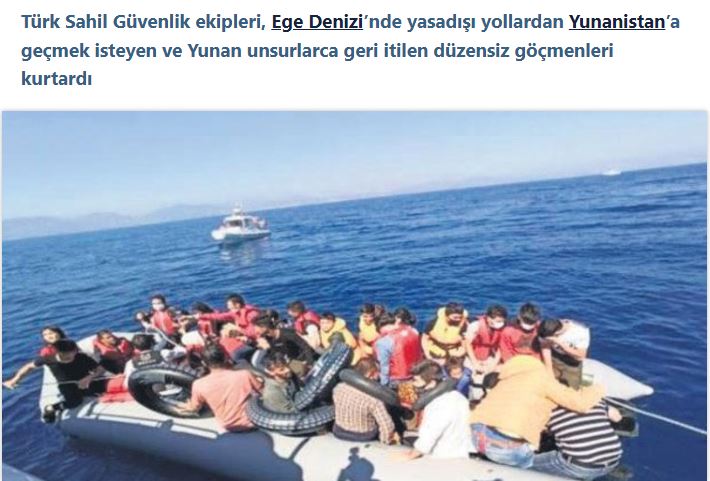Όπως αναφέρει τούρκικο δημοσίευμα, οι παράνομοι οικονομικοί μετανάστες απωθούνται από τις ελληνικές λιμενικές δυνάμεις και αναγκάζονται να επιστρέψουν στις τουρκικές ακτές.