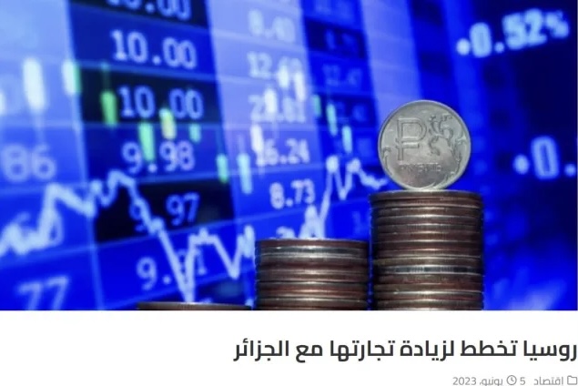 Ρώσος αξιωματούχος αποκάλυψε ότι η Ρωσία σχεδιάζει να αυξήσει σημαντικά τις εμπορικές συναλλαγές με την Αλγερία, με την έναρξη μηχανισμού χρηματοοικονομικών συναλλαγών μεταξύ των δύο χωρών ως εναλλακτική λύση στο σύστημα «SWIFT» [=Society for Worldwide Interbank Financial Telecommunications], γράφει αραβικό δημοσίευμα.