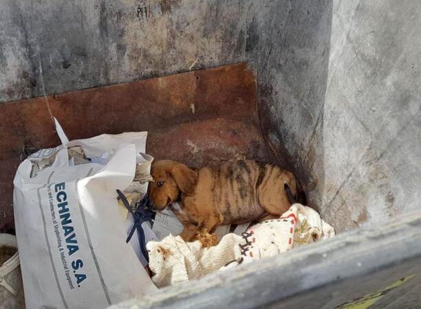 Σε τι κοινωνία ζούμε; Πέταξαν ζωντανό σκυλάκι σε κάδο σκουπιδιών κοντά στο Μπισχοίνι Ηλείας