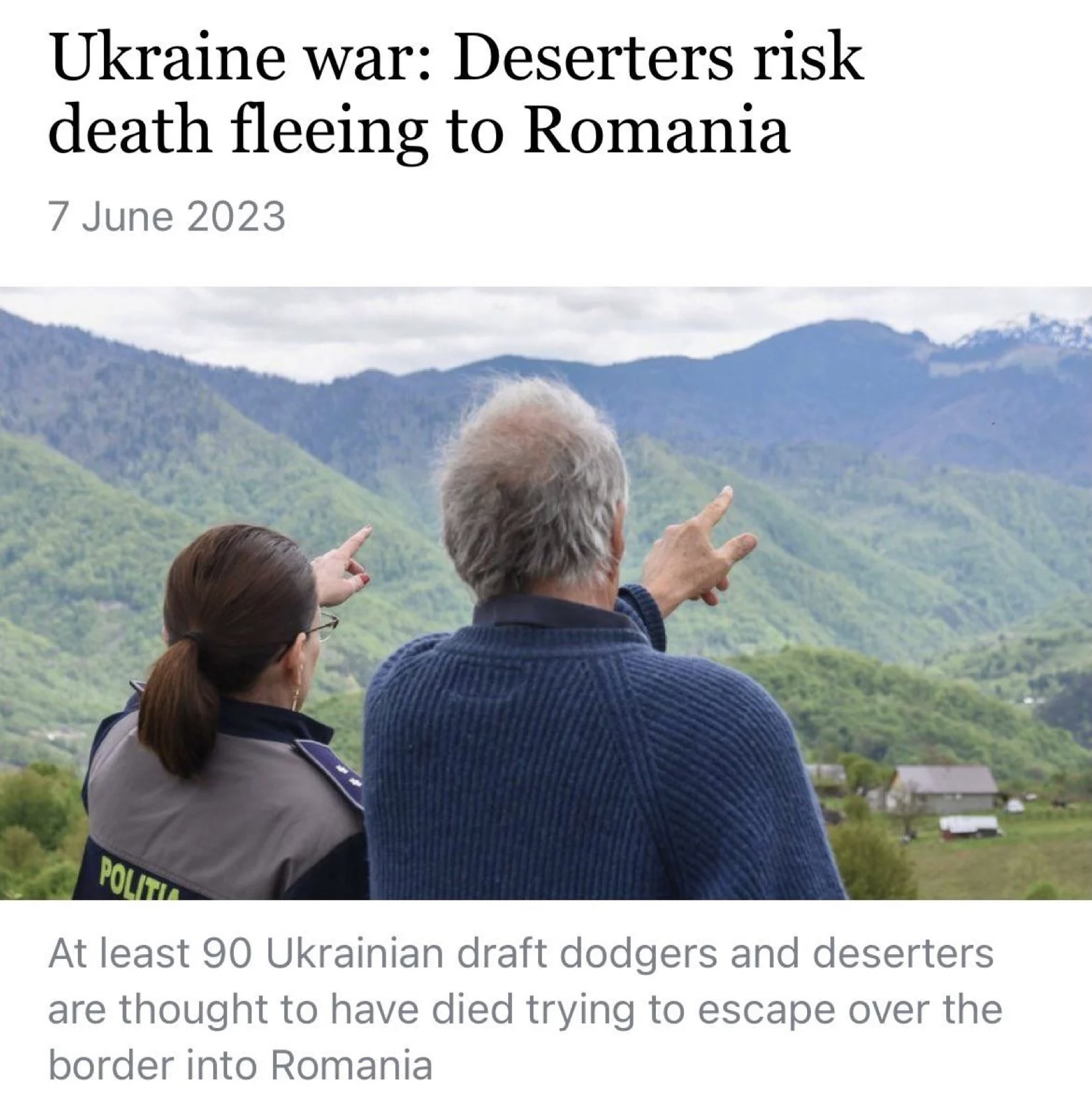Ο ανταποκριτής του BBC συναντήθηκε με μερικούς από αυτούς στη Ρουμανία και δημοσίευσε ένα συγκλονιστικό και άκρως αποκαλυπτικό άρθρο με τίτλο «Ο πόλεμος στην Ουκρανία: Οι λιποτάκτες κινδυνεύουν να πεθάνουν δραπετεύοντας στη Ρουμανία».