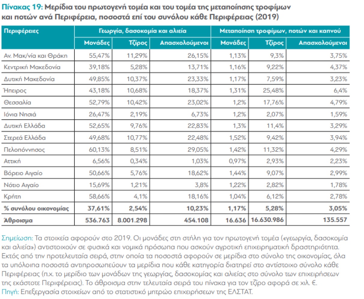 Εάν εκμεταλλευθεί η Ελλάδα τις τουριστικές επιδόσεις της, συνδέοντας τον πρωτογενή τομέα (γενικότερα την εγχώρια παραγωγή) με τον τουρισμό, μπορεί να επιτύχει θαύματα – εκτός του ότι είναι προφανώς απαράδεκτο να προσφέρουν τα ξενοδοχεία μας βουτυράκια Δανίας, μέλι Κίνας κλπ. Ο τζίρος του πρωτογενούς ύψους μόλις 8 δις € και της μεταποίησης του στα 16,6 δις € είναι εξαιρετικά χαμηλός – τεκμηριώνει όμως τις τεράστιες προοπτικές τους.