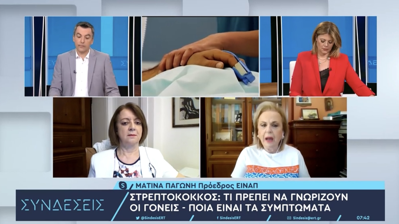 Η πρόεδρος της ΕΙΝΑΠ Ματίνα Παγώνη μίλησε για τον στρεπτόκοκκο και επέστησε την προσοχή των γονέων για συγκεκριμένα συμπτώματα κατά τη διάρκεια της νόσησης. Η ίδια σημείωσε ότι ο στρεπτόκοκκος είναι αντιμετωπίσιμος τα δύο πρώτα 24ωρα και ότι είναι σπάνιο να χάσει κάποιος τη ζωή του, αλλά απαιτείται προσοχή στα μικρά παιδάκια μέχρι 8 – 10 ετών και στους πολύ μεγάλους σε ηλικία που έχουν υποκείμενα νοσήματα.