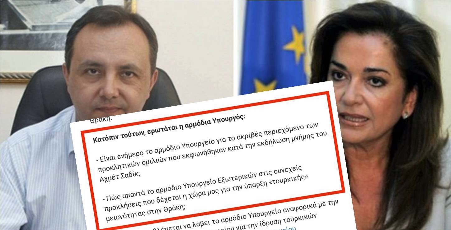 Ερώτηση στην ΥΠΕΞ Ντόρα Μπακογιάννη: “Πώς απαντά το αρμόδιο Υπουργείο Εξωτερικών στις συνεχείς προκλήσεις που δέχεται η χώρα μας για την ύπαρξη «τουρκικής» μειονότητας στην Θράκη;”