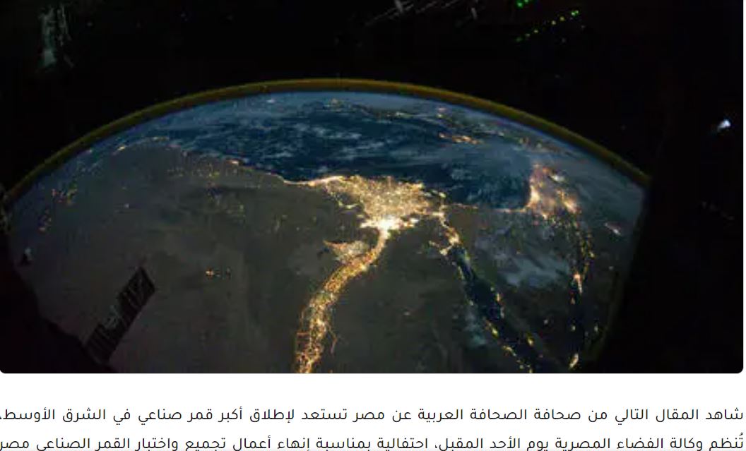 Αξιοσημείωτο είναι ότι η Αιγυπτιακή Διαστημική Υπηρεσία ετοιμάζεται να εκτοξεύσει μια ομάδα πειραματικών και επιχειρησιακών δορυφόρων, με επικεφαλής τον «MisrSat 2», ο οποίος αυτή τη στιγμή συναρμολογείται και δοκιμάζεται στην πρώτη πειραματική λειτουργία του Κέντρου Συναρμολόγησης, Ολοκλήρωσης και Δοκιμών στα κεντρικά γραφεία της Αιγυπτιακής Διαστημικής Υπηρεσίας, καθώς είναι το μεγαλύτερο στο είδος του στη Μέση Ανατολή, το οποίο αντιπροσωπεύει ένα νέο επίτευγμα στη διαστημική και δορυφορική βιομηχανία στην Αίγυπτο.