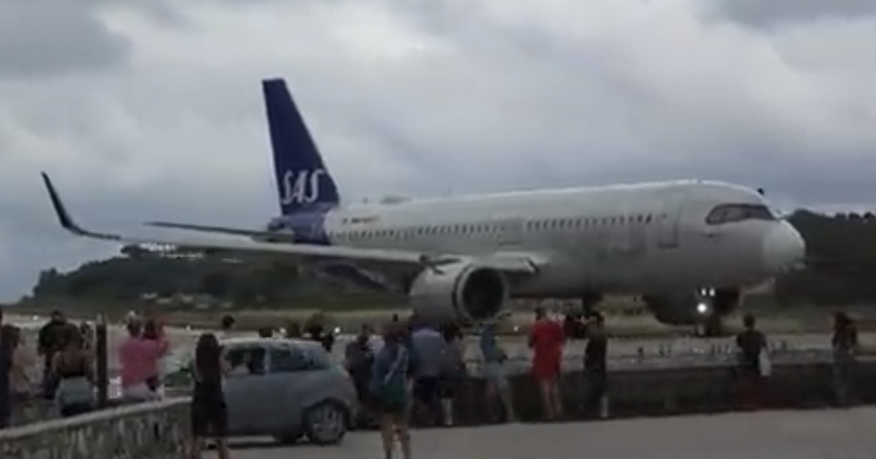Συγκεκριμένα, ένα αεροπλάνο απογειώνεται ενώ στο σημείο έχει συγκεντρωθεί πλήθος κόσμου. Παρά το γεγονός ότι υπάρχουν αρκετές σημάνσεις που προειδοποιούν τον κόσμο να μην βρίσκεται κοντά επειδή υπάρχει κίνδυνος, δεν είναι λίγοι εκείνοι που συγκεντρώνονται καθημερινά στην παραλία που βρίσκεται ακριβώς δίπλα στο αεροδρόμιο του νησιού για να δουν ένα αεροπλάνο να προσγειώνεται ή να αποδειώνεται δίπλα τους και να βγάλουν φωτογραφίες και βίντεο.