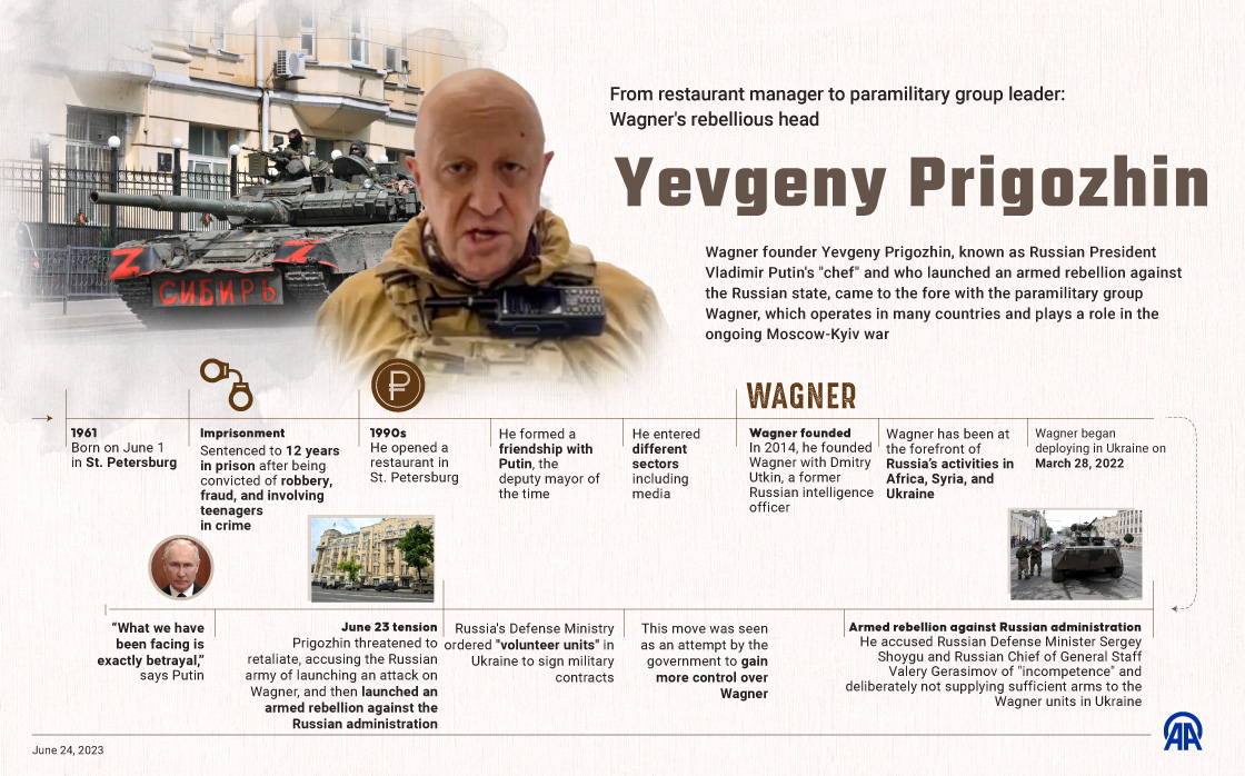 Ο Πριγκόζιν έχει κατηγορήσει επανειλημμένα τον Ρώσο υπουργό Άμυνας Σεργκέι Σόιγκου και τον Βαλέρι Γκερασίμοφ, διοικητή των ρωσικών δυνάμεων στην Ουκρανία, για «ανικανότητα» και σκόπιμη υποτροφοδότηση μονάδων Wagner που πολεμούν εκεί.