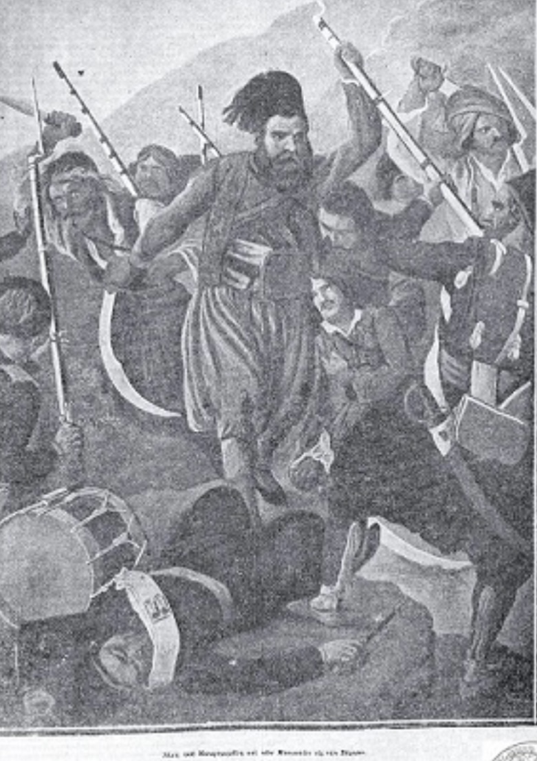 Φωτογραφία: Νίκη του Μούρτζινου και των Μανιατών στην Βέργα. Πίνακας του Πέτερ φον Ες.