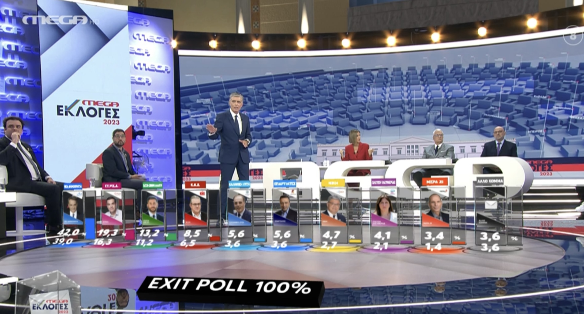 Σύμφωνα με το τελικό exit poll τα ποσοστά των κομμάτων διαμορφώνονται ως εξής: