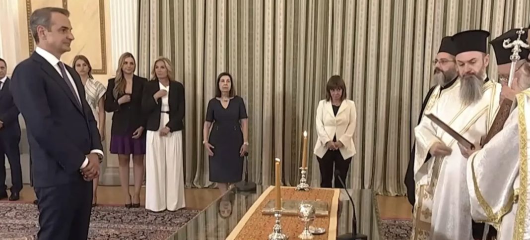 Πραγματοποιήθηκε  η ορκωμοσία ενώπιον της Προέδρου της Δημοκρατίας Κατερίνας Σακελλαροπούλου, του Κυριάκου Μητσοτάκη ως Πρωθυπουργού της νέας κυβέρνησης η οποία θα ανακοινωθεί στις 5 το απόγευμα και θα ορκιστεί αύριο.