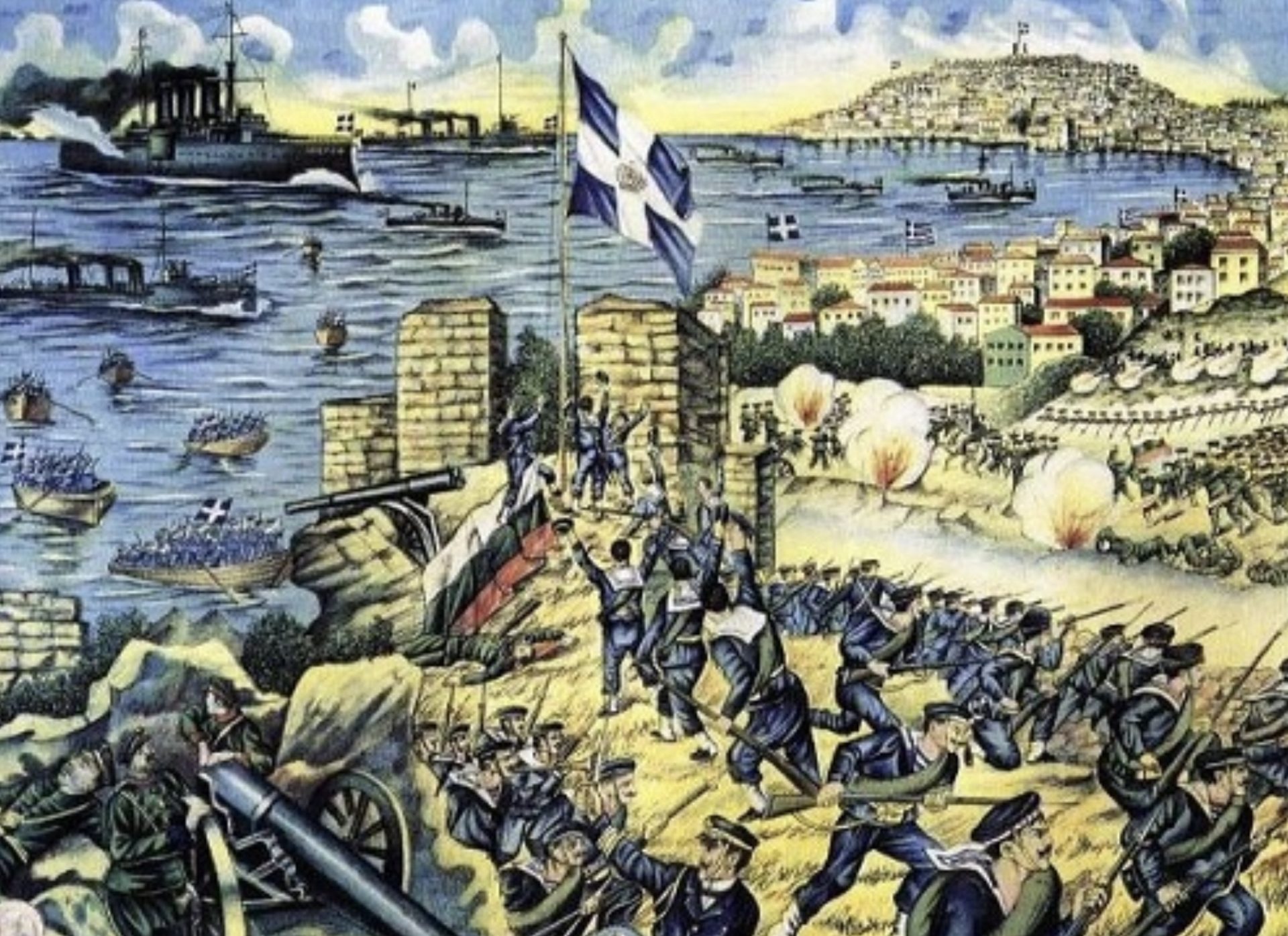 Στις 26 Ιουνίου 1913 τρία πλοία του ελληνικού στόλου αποβίβασαν αγήματα στην Καβάλα και την κατέλαβαν από τους Βουλγάρους δια περιπάτου. Ήταν η πρώτη επιχείρηση του ελληνικού πολεμικού ναυτικού, κατά τη διάρκεια του Β’ Βαλκανικού Πολέμου, που «έπαιζε» άνευ αντιπάλου στο Αιγαίο, καθώς οι Βούλγαροι δεν είχαν πλοία στο Αιγαίο και ο Οθωμανικός στόλος ήταν κλεισμένος στα Στενά.