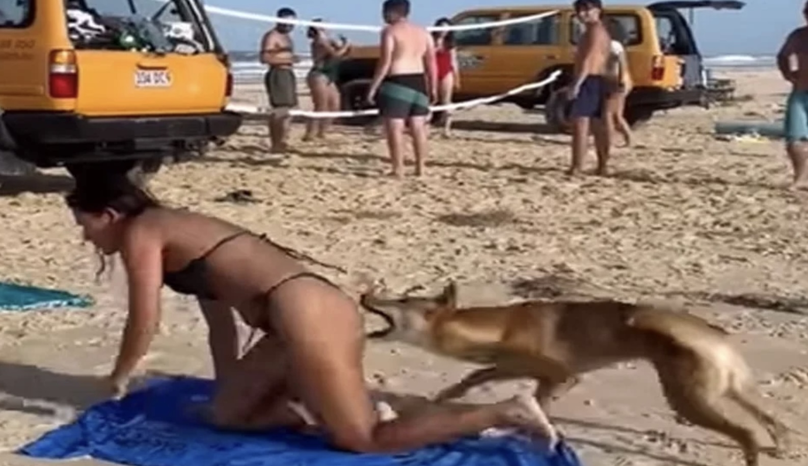 Το βίντεο δείχνει μια αγέλη ντίνγκο να βρίσκεται στην παραλία και ένα από αυτά πλησιάζει την κοπέλα που έκανε ηλιοθεραπεία και την δαγκώνει στα οπίσθια.