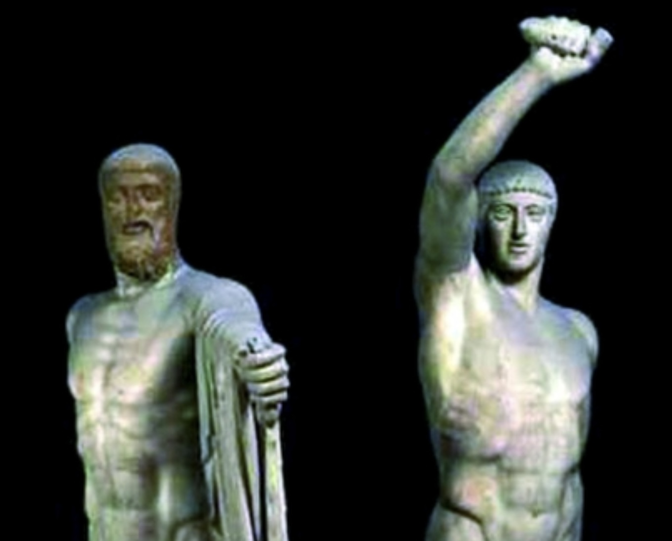 Ο λόγος είναι για τα αγάλματα των Τυραννοκτόνων, του Αρμόδιου και του Αριστογείτονα, έργα του γλύπτη Αντήνορα, που έχει υπογράψει τη μεγαλύτερη από τις σωζόμενες κόρες της Ακρόπολης και ήταν ίσως ο δημιουργός των γλυπτών συνθέσεων των αετωμάτων του υστεροαρχαϊκού ναού του Απόλλωνα στους Δελφούς (βλ. σ. 131-132), του οποίου την κατασκευή είχαν αναλάβει οι Αθηναίοι Αλκμεωνίδες. Τα αγάλματα των Τυραννοκτόνων, όπως είδαμε, στήθηκαν στην Αγορά της Αθήνας μετά την εκδίωξη των Πεισιστρατιδών και την εγκαθίδρυση της Δημοκρατίας, στην τελευταία δεκαετία του 6ου αιώνα (510-500 π.Χ.), αλλά τα πήρε ως λάφυρα ο Ξέρξης, όταν κατέλαβε την πόλη το 480 π.Χ.
