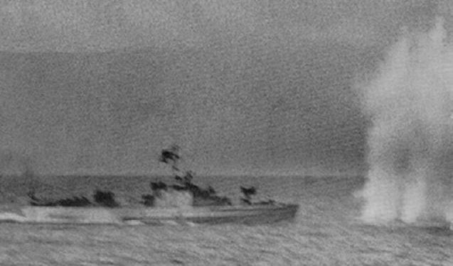 τη διαταγή να στρίψουμε, το καράβι δεν έστριβε. Κοίταξα στην τιμονιέρα και είδα, ότι ο πηδαλιούχος είχε σκοτωθεί.