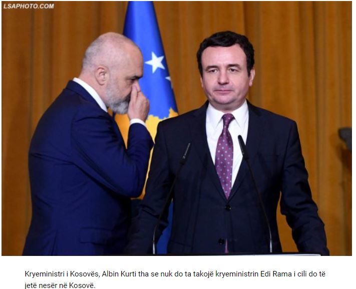 Ο πρωθυπουργός του Κοσσυφοπεδίου, Αλμπίν Κούρτι, αρνήθηκε να συναντηθεί με τον Αλβανό ομόλογό του Έντι Ράμα, ο οποίος θα φτάσει αύριο για διήμερη επίσκεψη στο Κόσοβο και τόνισε ότι θα το κάνει μόνο αν πραγματοποιηθεί κοινή συνεδρίαση των δύο κυβερνήσεων.