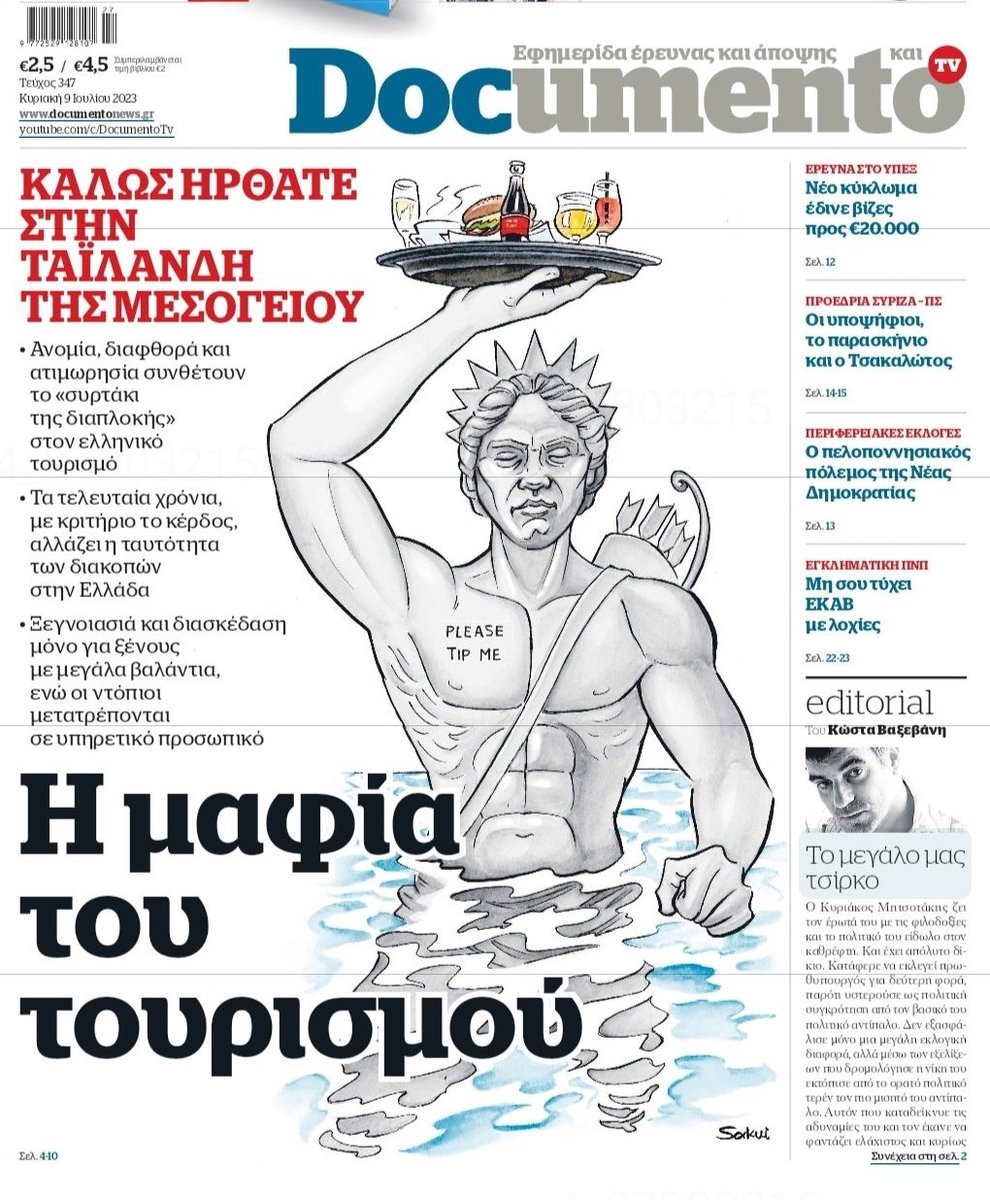 MEDIAΗ μαφια του Τουρισμού: Καλώς ήρθατε στην Ταϊλανδή της Μεσογείου8/07/2023 - 17:50μμΔΙΑΒΑΣΤΕ ΕΠΙΣΗΣ Τα πρωτοσέλιδα των εφημερίδων σήμερα ΚυριακήΣτην Εστία της Κυριακής: Η συνταγματική αναθεώρηση επισπεύδει τίς εκλογέςΣτην Κυριακάτικη Δημοκρατία: Μοιράζουν χρήμα όσο μας αποκομίζουνΣτο Κυριακάτικο Documento του Κώστα Βαξεβάνη: Πάρτυ εκατομμυρίων στο Μαξίμου και στα υπουργεία με τους συμβούλουςΤην Κυριακή 30/11 με την Εστία της Κυριακής: Το ημερολόγιο του Στρατηγού ΣκόμπιΤην Κυριακή 30/11 με την κυριακάτικη «δημοκρατία»: Σύνταγμα Χωροφυλακής ΑθηνώνΤο πρωτοσέλιδο της εφημερίδας Θεσσαλονίκη που κυκλοφορεί σήμερα ΣάββατοΜε σημαντικές προσφορές κυκλοφορεί η εφημερίδα Θεσσαλονίκη σήμερα Σάββατο Αποκαλυπτικό ρεπορτάζ στο Κυριακάτικο Documento Πρωτοσελιδα – ΕιδήσειςΚΥΡΙΑΚΑΤΙΚΟ DOCUMENTO ΔΗΜΟΦΙΛΗ Ανάρτηση βόμβα του Πάνου Καμμενου: Ακριβώς έτσι οι Γερμανοί σχεδιάζουν να μπλέξουν την Ευρώπη στον 3ο παγκόσμιο πόλεμο για να σωθούν…..Ανατροπή στη δίκη της ΚιβωτούΒόμβα από τον Πάνο Καμμενο για μίζες από Ουκρανία Ελλάδα!Νίκος Μωραϊτης: Σήμερα ο Κασσελάκης άνοιξε επισήμως την πόρτα της συγκυβέρνησης με ΝΔΣάλος με την διαφήμιση των Jumbo που κοροϊδεύει την Ιθάκη του Αλέξη ΤσίπραΧαμός στην εκπομπή της Ναταλίας Γερμανού με όσα είπε ο Νίκος Καρανίκας για το βιβλίο του Αλέξη ΤσίπραΆρθρο – καταπέλτης της ισραηλινής εφημερίδας Jerusalem Post με αφορμή τις ανακοινώσεις της Άγκυρας για τον «Ατσάλινο Θόλο»Το τελευταίο αντίο στον 19χρονο Ραφαηλ: Το φέρετρο έφτασε στην εκκλησία τυλιγμένο στη γαλανόλευκη στους ώμους στρατιωτικών που δεν μπορούσαν να συγκρατήσουν τα δάκρυά...