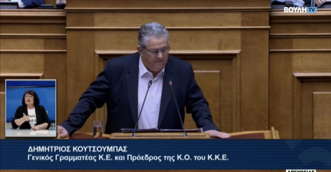 Η στιγμή που ο Δημήτρης Κουτσούμπας καταρρέει στο βήμα της Βουλής pic.twitter.com/RnzBLZXDrG