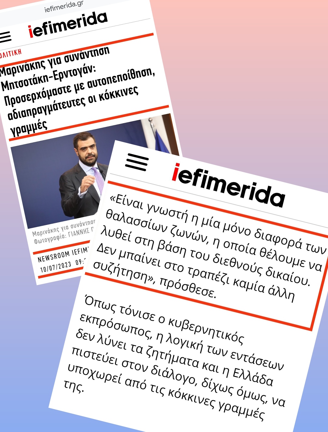 Όμως μόλις χθες ο νέος κυβερνητικός εκπρόσωπος Παύλος Μαρινάκης στο ΣΚΑΙ δήλωσε , για το θέμα τα εξής: