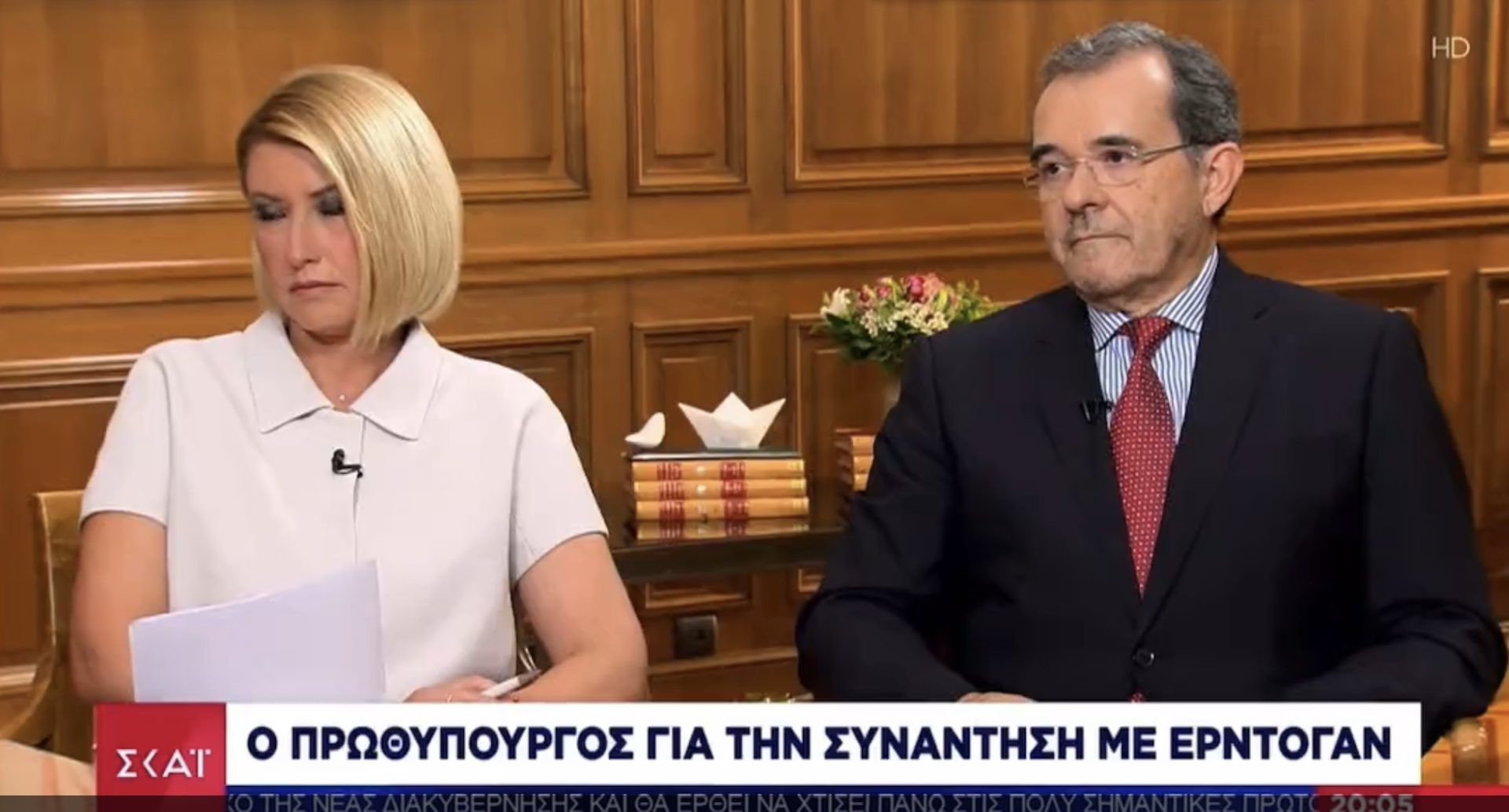 Το είδαμε στο διαδίκτυο και μας άρεσε. Στην συνεντευξη του πρωθυπουργού στον Σκαι παρατηρούμε πως τα βιβλία πλέον εχουν μετατραπεί σε διακοσμητικά στοιχεία.